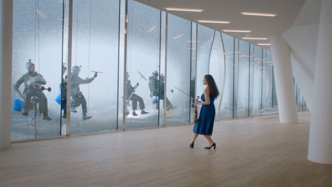 Saubere Höhenmusik: Fensterputzer spielen Donau-Walzer