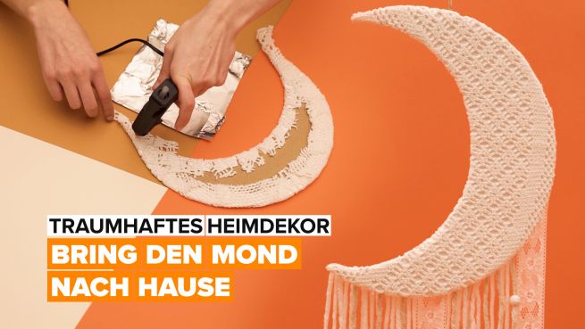 Mit einfachen Materialien kann diese Monddekoration die Stimmung Deines Zimmers wirklich aufhellen.